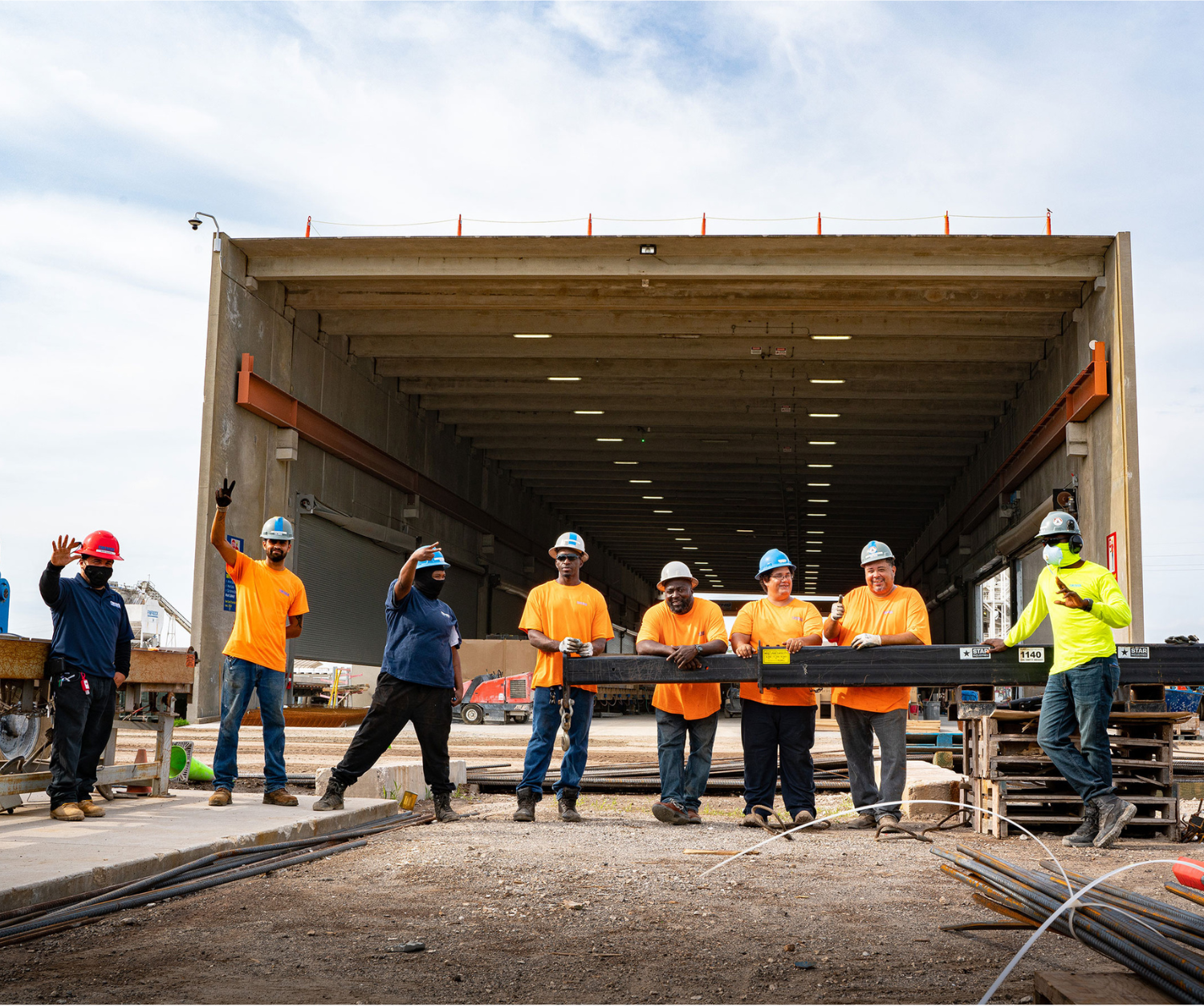 Precast components are built in our own facility to control quality, cost, and scheduling.