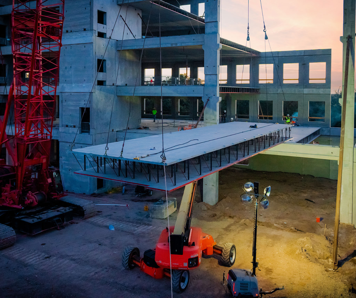 DualDeck® combines floor and ceiling into one precast component—speeding up construction, improving quality, and expanding design possibilities.