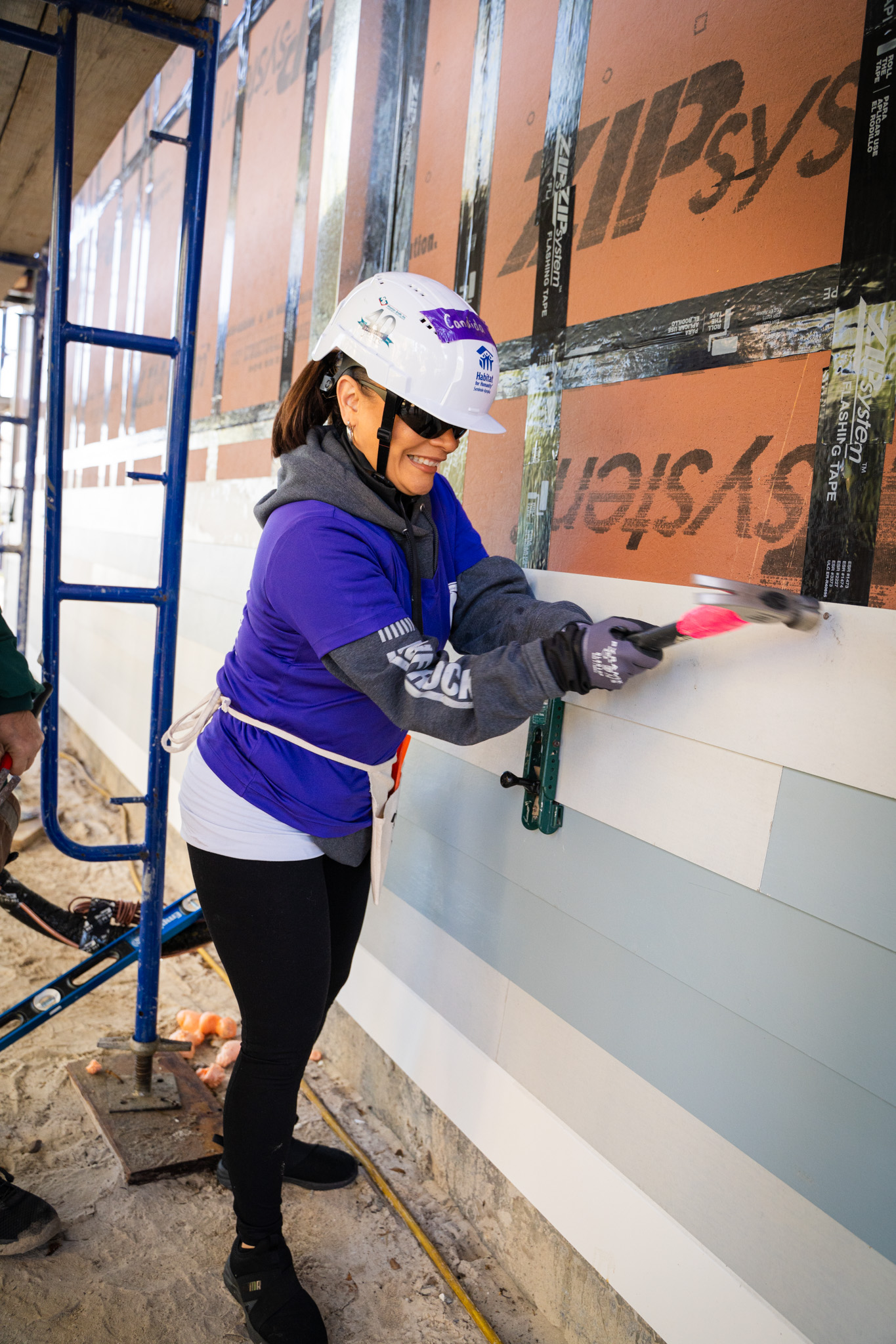 During the build day, FINFROCK volunteers helped with siding, measuring, cutting, and fastening panels to the exterior of the home. It was a chance for the women of FINFROCK to step onto the jobsite, work together, and directly support a project that will make a lasting difference for a local family.